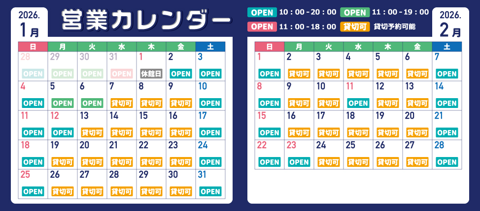 - 2026年1月・2月の営業カレンダー
